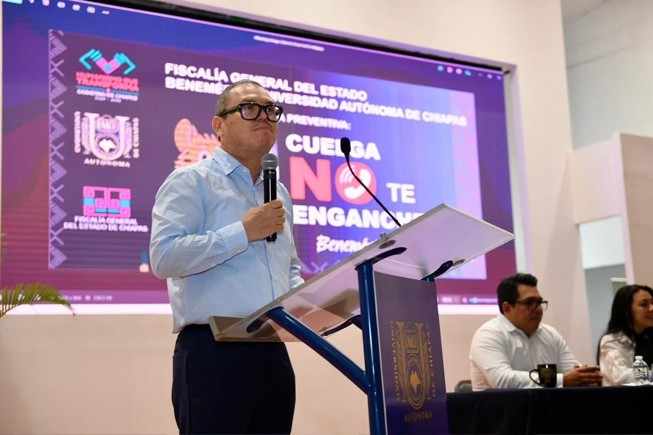 Tuxtla Gutiérrez, Chiapas.- En cumplimiento con la seguridad, la integridad y el bienestar de la comunidad universitaria, la Universidad Autónoma de Chiapas, en coordinación con la Fiscalía General del Estado de Chiapas, puso en marcha la Campaña sobre prevención de Extorsión Telefónica y Digital: “Cuelga, no te enganches Benemérita UNACH”.
