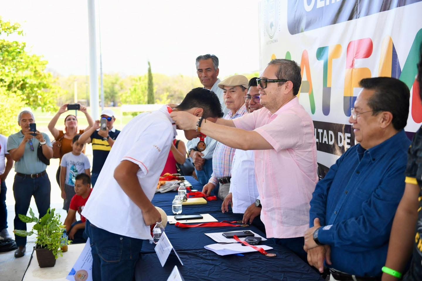 Tuxtla Gutiérrez, Chiapas.- Se realizó la ceremonia de Premiación de la Fase Estatal de la Olimpiada Mexicana de Matemáticas (OMM) y la Olimpiada Mexicana de Matemáticas para Educación Básica (OMMEB), organizada por la Facultad de Ciencias en Física y Matemáticas de la Universidad Autónoma de Chiapas, donde participan alumnos desde 4° grado de primaria hasta 6° semestre de preparatoria y donde las y los ganadores recibieron las medallas de manos de las autoridades universitarias.