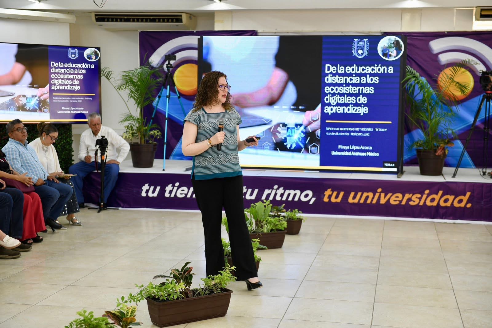 En este mismo evento, se contó con la participación de la secretaria Técnica de la Subsecretaría de Educación Superior, Blanca Lizbeth Inguanzo Arias, quien a través de medios digitales compartió la conferencia “Retos de la educación digital en México” y de la subdirectora de Tecnología Educativa de la Universidad Anáhuac, Mireya López Acosta, quien disertó la ponencia “De la educación a distancia a los ecosistemas digitales de aprendizaje”.