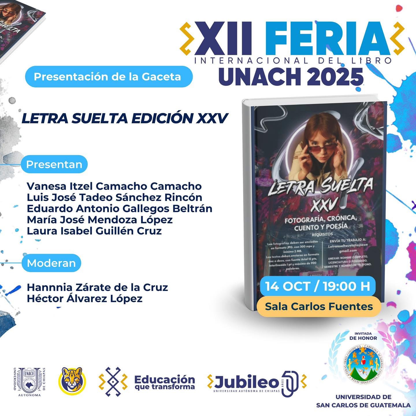 Tuxtla Gutiérrez, Chiapas. - Cerca de 400 actividades formarán parte de la XII edición de la Feria Internacional del Libro UNACH 2025, que se desarrollará del 13 al 17 de octubre en diferentes campus de la institución donde se espera que miles de personas sean testigos de presentaciones de libros, galas artísticas, conferencias y exposiciones, entre otras.