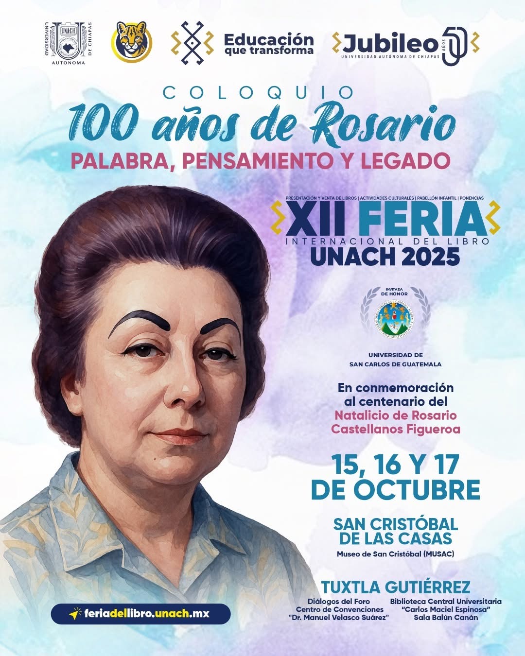 Finalmente, expuso que la Feria rendirá un homenaje especial a Rosario Castellanos, intelectual y escritora chiapaneca universal, cuyo pensamiento sigue siendo un faro para el feminismo, la crítica cultural y la defensa de los pueblos originarios.