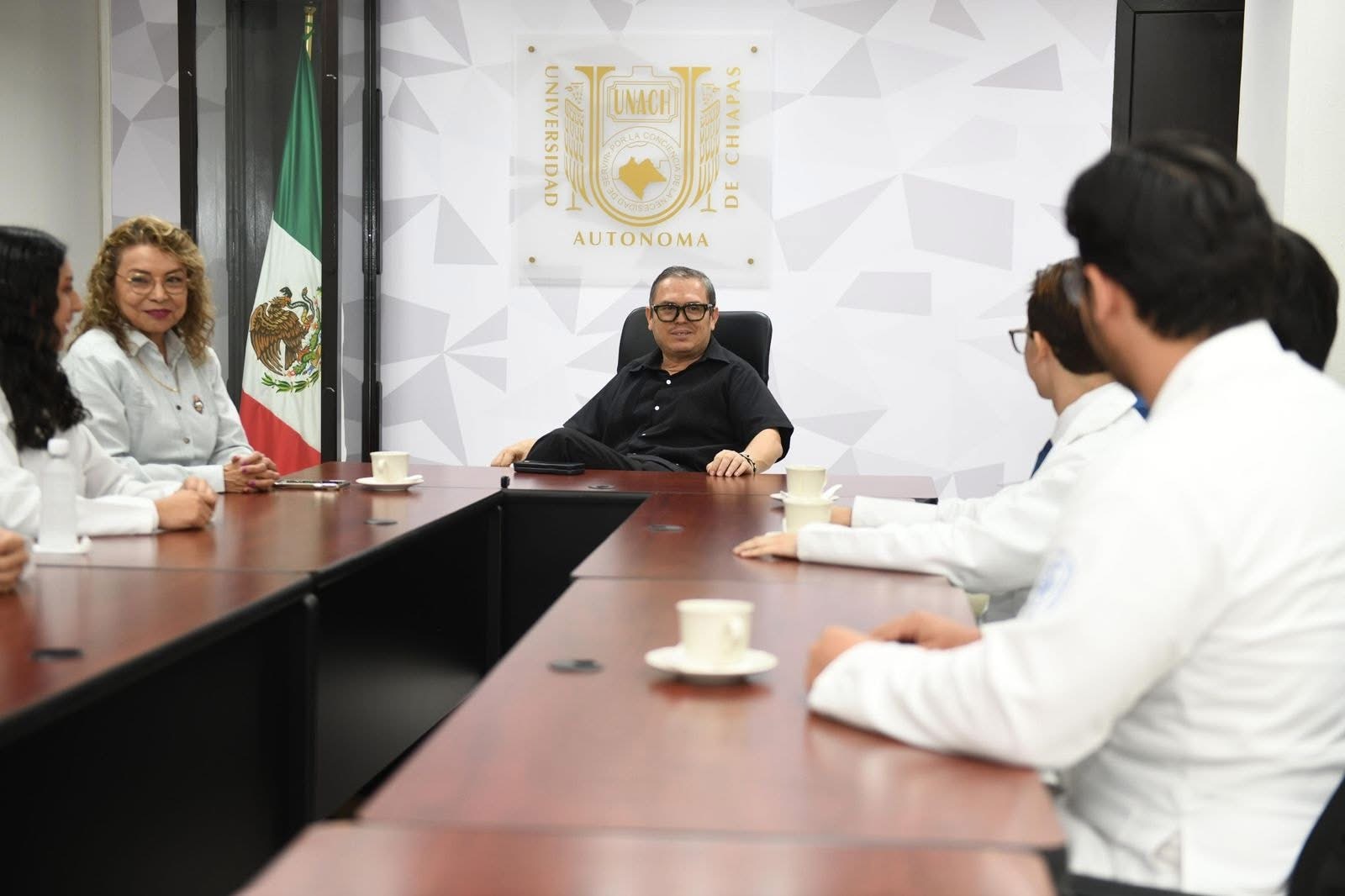 Tuxtla Gutiérrez, Chiapas. - Estudiantes de la Facultad de Medicina Humana “Dr. Manuel Velasco Suárez” Campus II de la Benemérita Universidad Autónoma de Chiapas, que representarán al estado y a México en el World Congress of Neurosurgery (WFNS 2025) a desarrollarse en Dubái, se reunieron con el rector Oswaldo Chacón Rojas, en las instalaciones de la Colina Universitaria.