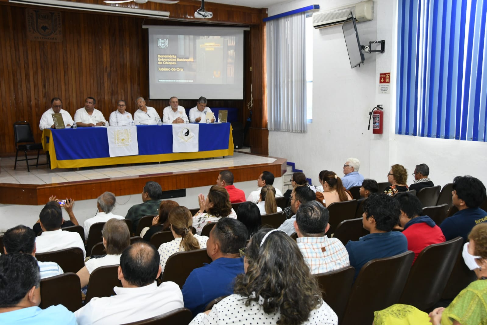 Tapachula, Chiapas.- Se llevó a cabo en el Aula Magna de la Facultad de Negocios, la presentación del Libro “Benemérita Universidad Autónoma de Chiapas, Jubileo de Oro”, obra que reúne la historia, identidad y legado de la UNACH.