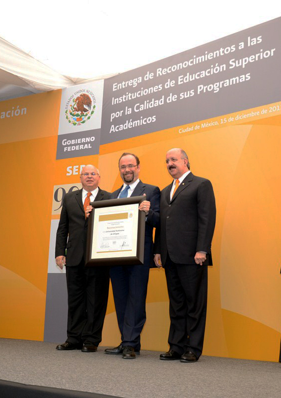 Cabe señalar que entre los premiados, la UNACH junto con un grupo de universidades de distintas partes del país, recibieron la distinción en grado de Excelencia, al contar con el aval de los Comités Interinstitucionales para la Evaluación de la Educación Superior (CIEES) en el cien por ciento de los programas académicos acreditables que ofrecen.