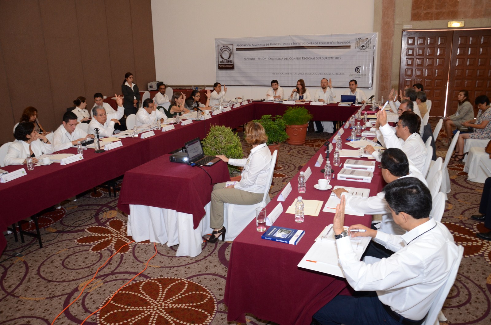 Tuxtla Gutiérrez, Chiapas.- A fin de analizar y conformar el plan de trabajo que se implementará durante los próximos cuatro años, miembros de la Asociación Nacional de Universidades e Instituciones de Educación Superior (ANUIES) se reunieron en esta ciudad durante la Segunda Sesión Ordinaria del Consejo Sur Sureste de este organismo