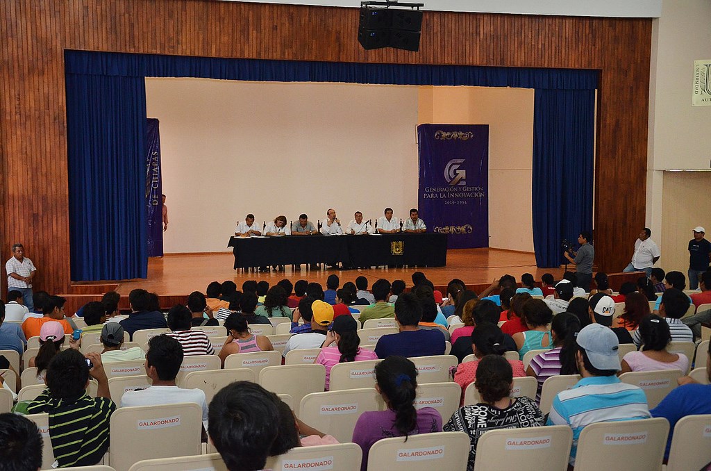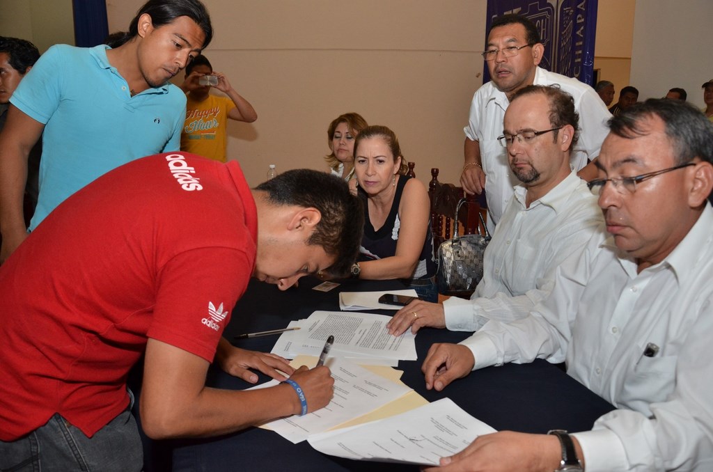Durante una asamblea que se desarrolló por más de cuatro horas en el Auditorio “Los Constituyentes”, el rector Jaime Valls Esponda y el grupo de jóvenes universitarios firmaron una minuta donde se establecen compromisos de ambas partes en distintos temas.