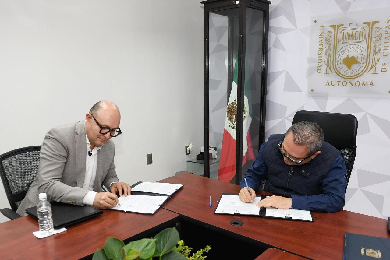 Tuxtla Gutiérrez, Chiapas. - El rector Oswaldo Chacón Rojas y el coordinador Académico de la Escuela Nacional de Formación Judicial, Sergio Javier Molina Martínez, signaron un acuerdo de entendimiento de colaboración académica, en las instalaciones de la rectoría.