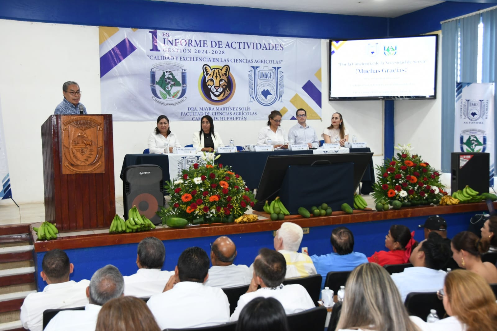 Huehuetán, Chiapas. - Rindió su 1er. Informe de Actividades, Gestión 2024-2028, la directora de la Facultad de Ciencias Agrícolas, Campus IV, de la Benemérita Universidad Autónoma de Chiapas, Mayra Martínez Solís, ante los integrantes de la Junta de Gobierno, la comunidad docente y estudiantil de esta unidad académica.