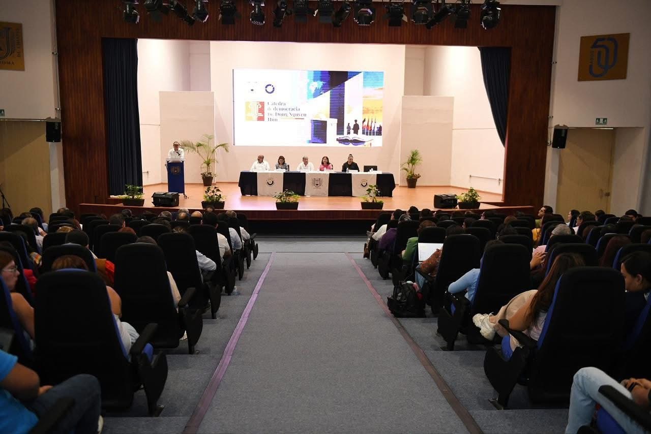Ante la consejera presidenta del Instituto de Elecciones y Participación Ciudadana, Marina Martha López Santiago, aseguró que la universidad asume con esta cátedra su rol, responsabilidad y misión de formar ciudadanía, además de rendir un justo y merecido homenaje a un creyente y promotor de la democracia en el mundo, como es Dong Nguyen Huu.