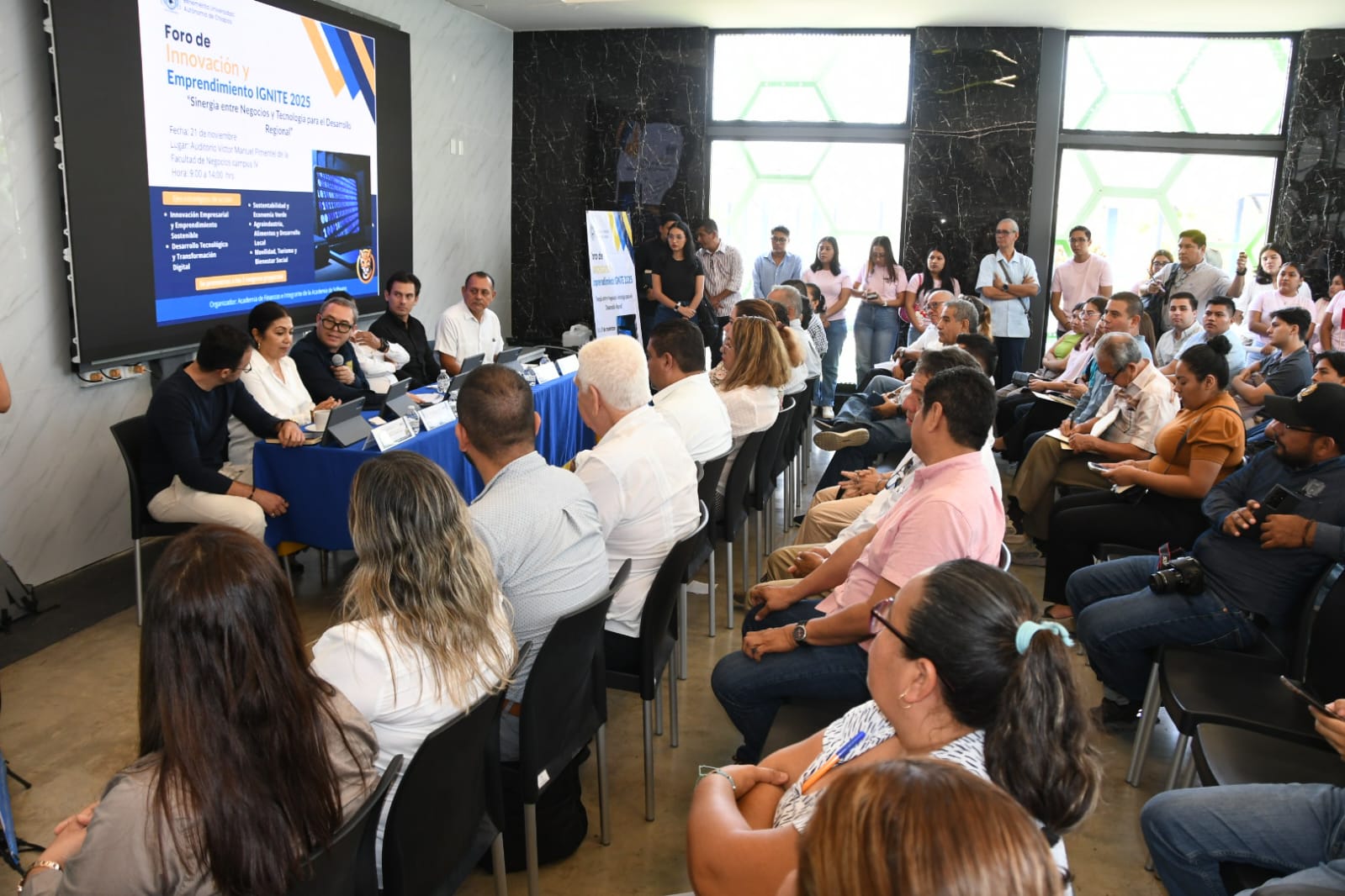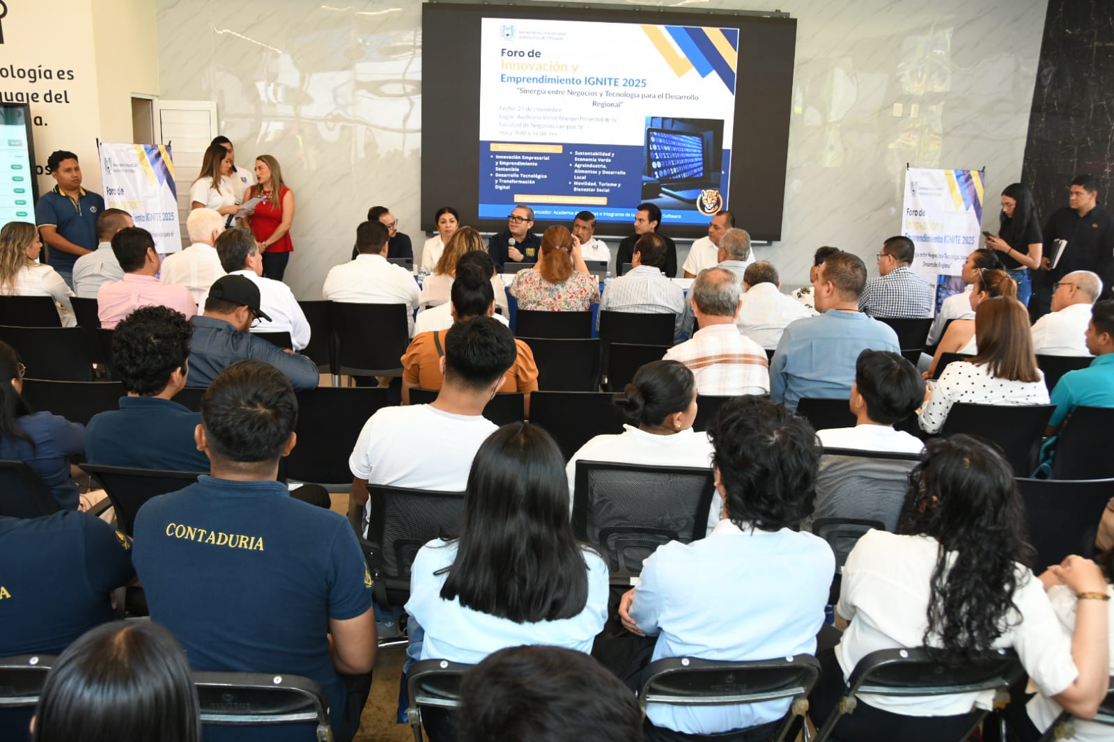 Tapachula, Chiapas.- La Benemérita Universidad Autónoma de Chiapas, a través de la Facultad de Negocios Campus IV Tapachula, llevó a cabo el “1er. Foro de Innovación y Emprendimiento IGNITE UNACH 2025”, con el tema: Sinergia entre Negocios y Tecnología para el Desarrollo Regional.