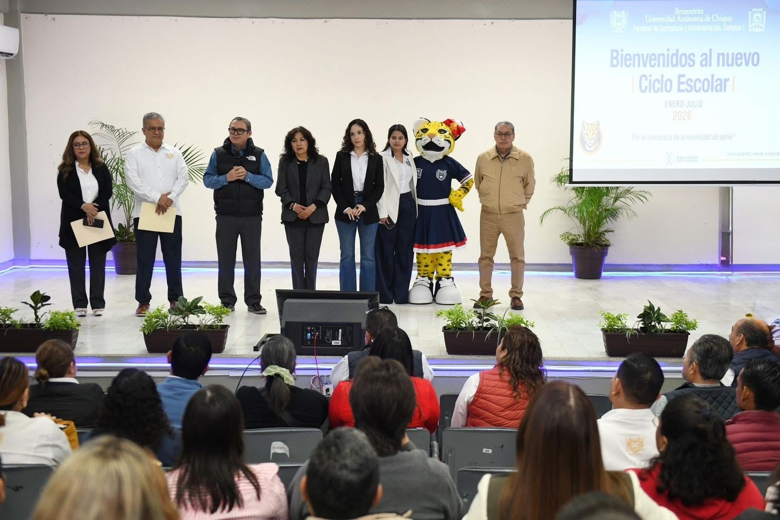 Tuxtla Gutiérrez, Chiapas.- En el marco del inicio de las actividades escolares del semestre enero – junio 2026 de la Benemérita Universidad Autónoma de Chiapas, el rector Oswaldo Chacón Rojas dio la bienvenida a las juventudes que se forman en distintas unidades académicas de esta institución.