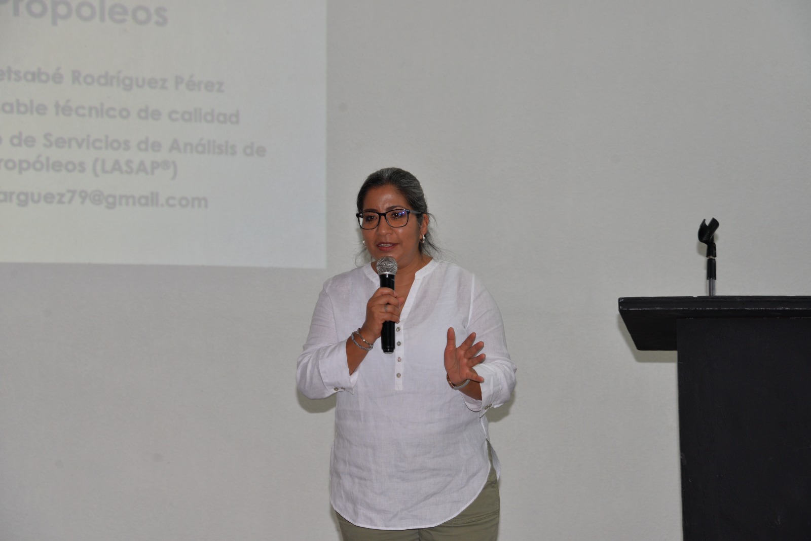 Esta capacitación fue impartida por la profesora de tiempo completo e investigadora de la UNAM, Betsabé Rodríguez Pérez, quien explicó que el propóleo es una sustancia resinosa, compuesta por una mezcla de diferentes partes de plantas y moléculas secretadas por las abejas.