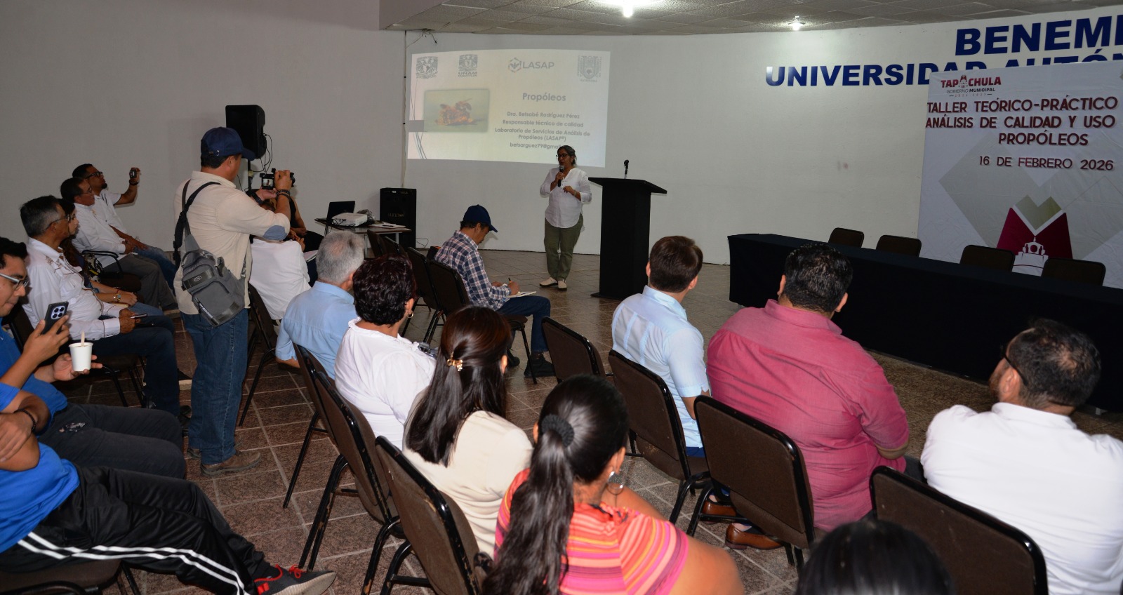 Tapachula, Chiapas.- Se llevó a cabo el taller teórico-práctico “Para el análisis de calidad y uso de los propóleos”, organizado por la Benemérita Universidad Autónoma de Chiapas y el Gobierno Municipal de Tapachula a través de la Secretaría de Desarrollo Rural y Fomento de Agronegocios, dirigido a apicultores, técnicos, docentes, estudiantes y público en general.