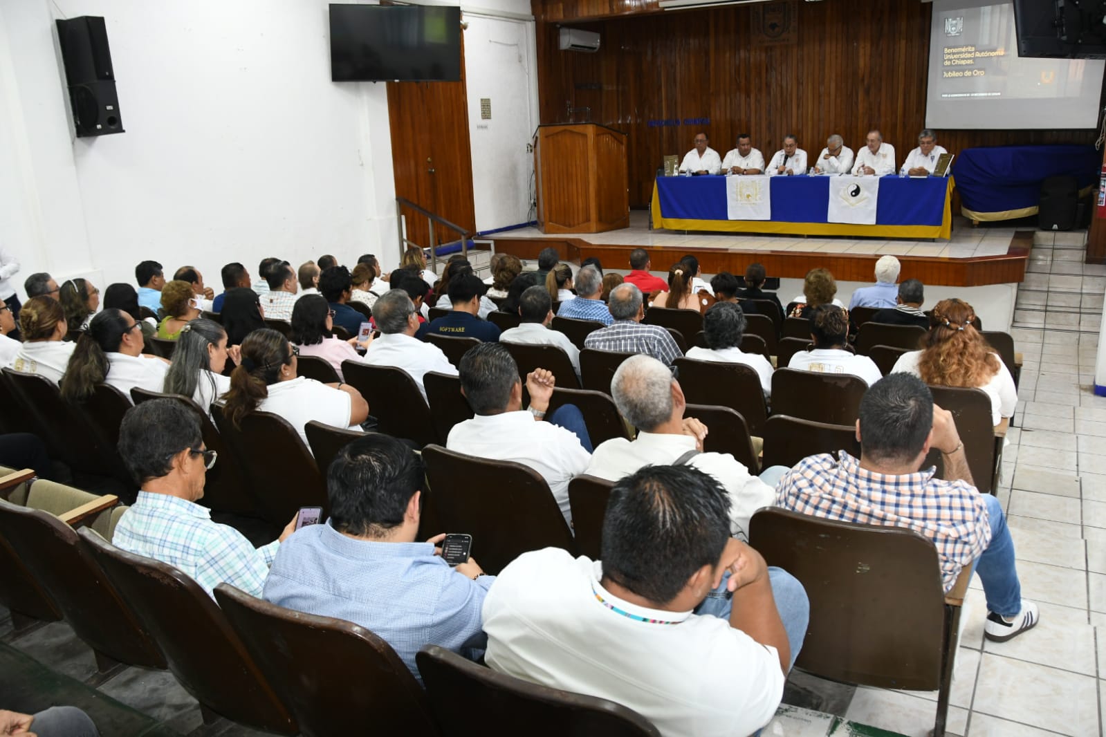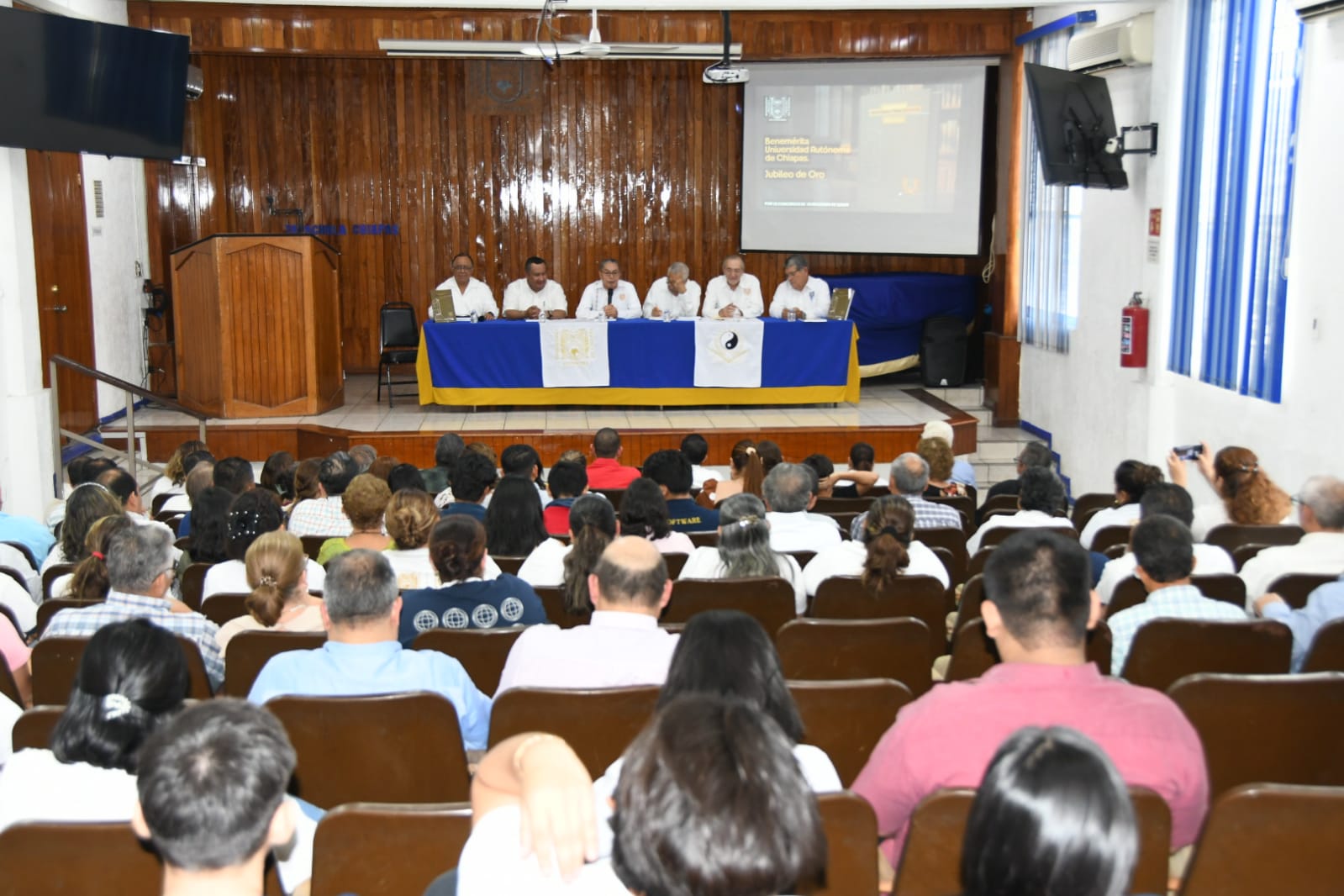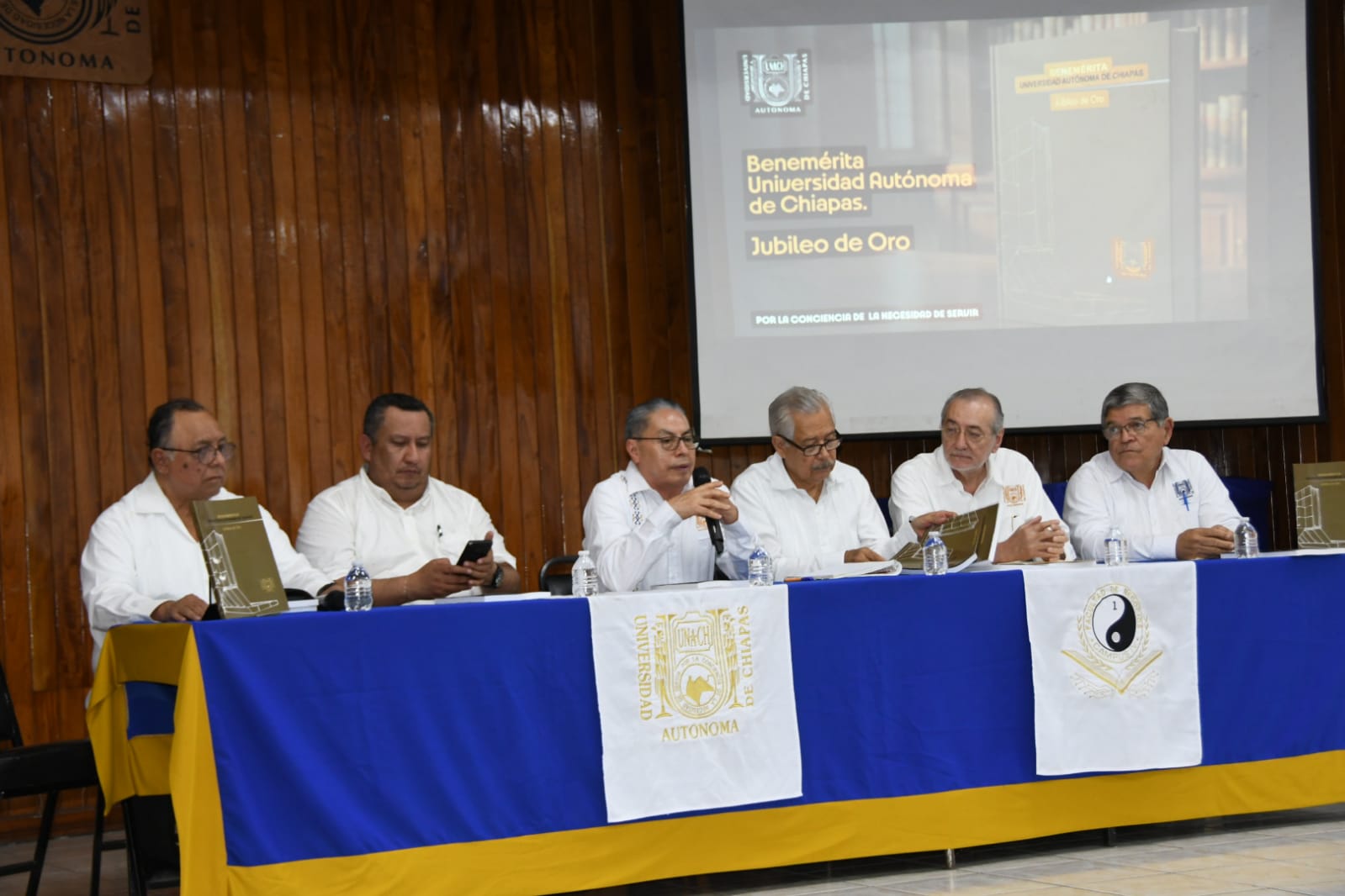 Tapachula, Chiapas.- Se llevó a cabo en el Aula Magna de la Facultad de Negocios, la presentación del Libro “Benemérita Universidad Autónoma de Chiapas, Jubileo de Oro”, obra que reúne la historia, identidad y legado de la UNACH.