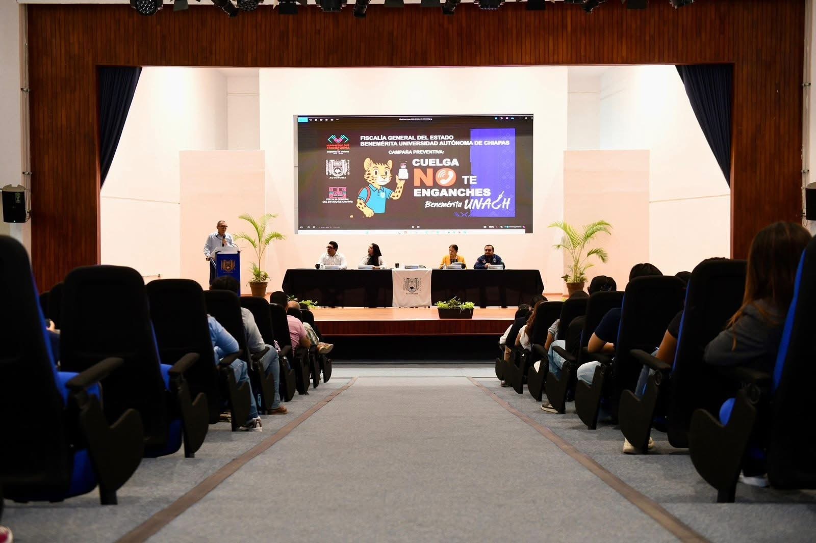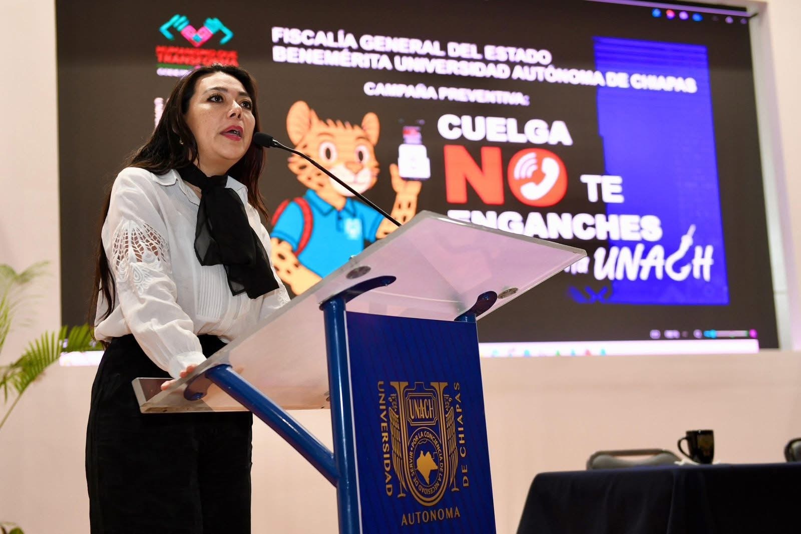 Tuxtla Gutiérrez, Chiapas.- En cumplimiento con la seguridad, la integridad y el bienestar de la comunidad universitaria, la Universidad Autónoma de Chiapas, en coordinación con la Fiscalía General del Estado de Chiapas, puso en marcha la Campaña sobre prevención de Extorsión Telefónica y Digital: “Cuelga, no te enganches Benemérita UNACH”.