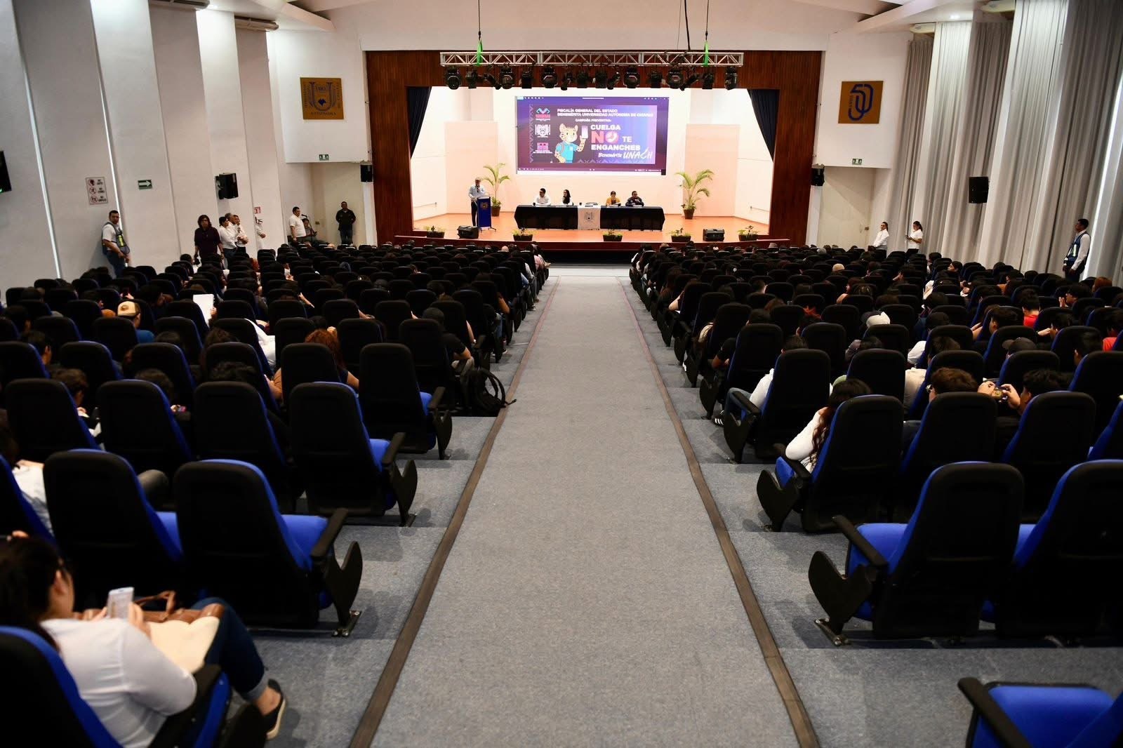 La campaña "Cuelga, No Te Enganches Benemérita UNACH", dio inicio con la plática de prevención sobre extorsión telefónica, presentada por el experto y perito en Psicología, Sergio Pastrana Ruiz, quien presentó los pormenores del tema a los asistentes, además de resolver sus dudas en una sesión de preguntas y respuestas.